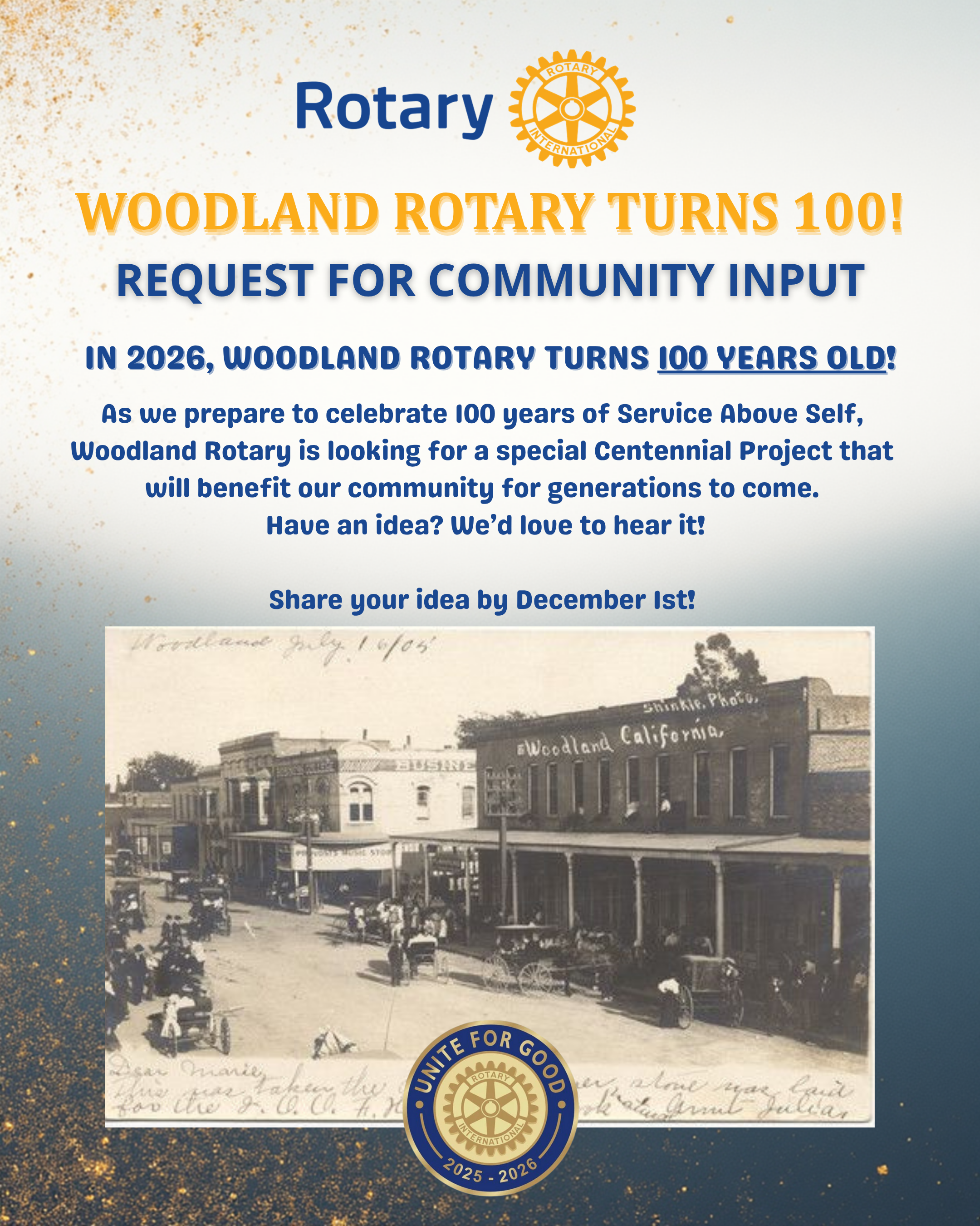 We’re on a mission! For our Centennial Year the Rotary Club of Woodland is taking on the challenge of completing 100 Acts of Service!