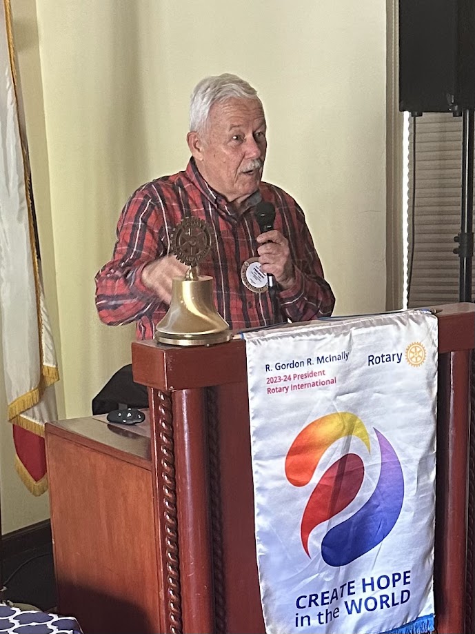 With President Karl Diekman traveling this week, President-elect Bob Nakken presided over today's smaller than normal meeting. Bob will be joining Karl in attending the 2024 Rotary International Convention next week in Singapore.