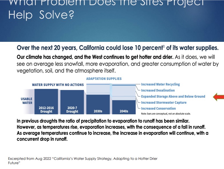 Jerry Brown, Executive Director of the Sites Project Authority was our guest speaker today, providing an extensive update on the proposed Sites Reservoir, a 1.5 million acre-foot offstream storage facility, decades in the making, just west of Maxwell CA to manage and deliver water, improve the environment, and provide flood control and recreational benefits. Thanks to Blair Voelz for arranging this program. More about the Sites Project Authority can be viewed on its website: https://sitesproject.org/#