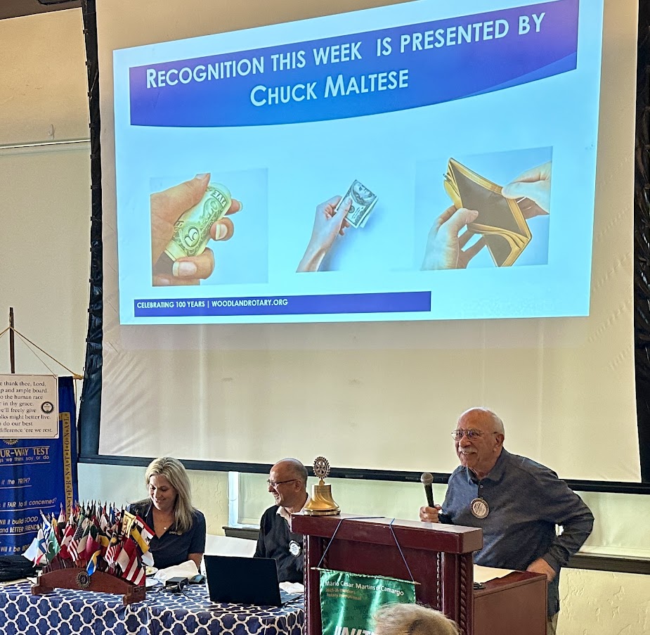 Chuck Maltese took charge of today's Recognition. Tom Schwarzgruber enjoyed a recent two week stay in Hawaii with wife Gail and reported former Club member Mahlon Whittle plans to attend our Centennial Celebration. Shawn Seyk was shared a happy memory as his first daughter, Sarah, was born to wife Brenda 26 years ago today at Kaiser in Sacramento. Mark Ullrich enjoyed the recent Yolo Fliers Club trip to Puerto Vallarta with Audrey, but he was also bummed out for the SF 49ers exit from the NFL playoffs this year. Don Huff was happy to get his limit on the last day of duck season. Gregg Kowes took his son on college tours of Arizona State and Grand Canyon University. Dave Molinaro lost his annual bet with Roger Kohlmeier on SF 49ers versus Las Vegas Raider results, and paid off his $100 debt. Roger turned around and 'rang the bell' for the Rotary Foundation. Gary Bunch had an amazing week at Don Huff's place at Knona that he purchased at the 2025 Dinner Auction.