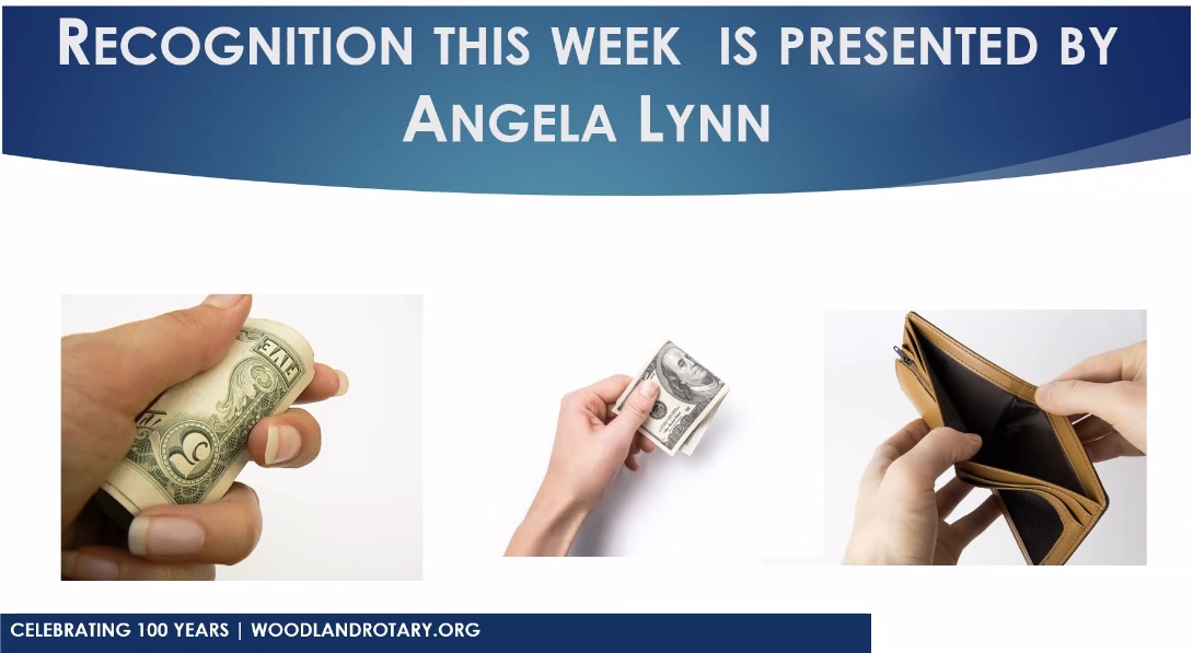 Today's Century Spotlight shined on Les Engelmann and Nick Roncoroni. Les became a member of the Club 36 years ago this month, having been sponsored by the late Don Smith. Nick has been a member for ten years now. Despite the challenges, Nick says he is enjoying the personal growth that comes with leadership working on important efforts for the Club like fundraising for the Centennial Celebration. In Rotary Fun Facts we explored why we do Recognition in the Club. Mike Chandler celebrated his 77th birthday on Feb 1 (Woodland), and Blair Voelz got an early warning on his Feb 5 wedding anniversary (Sacramento; 1971) with wife Jan.