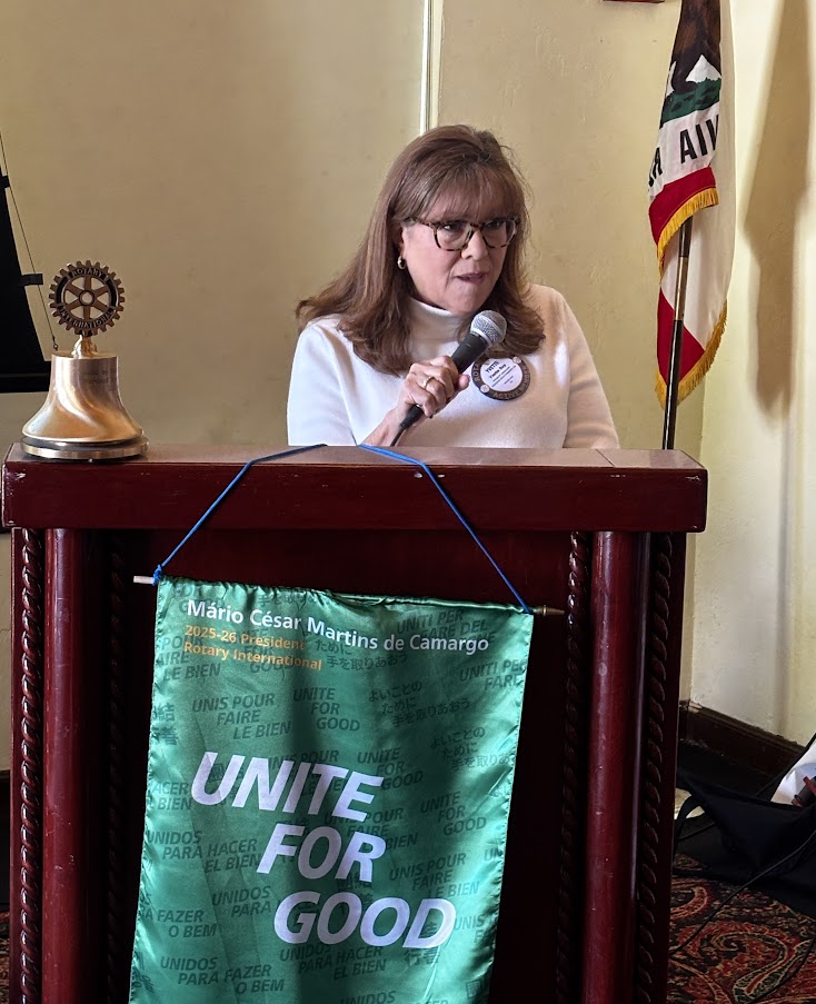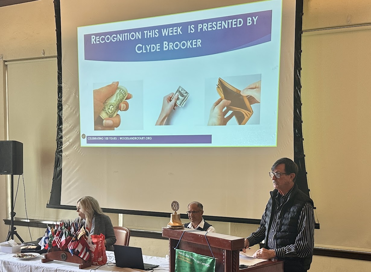 Steve Venables celebrated his 84th birthday, yesterday, April 6th (Visalia CA). He was the first of his family to be born in a hospital. Gregg Kowes celebrated his 46th birthday on March 25th. He was born in Grass Valley but moved to Woodland a year later and has been here ever since. Chuck Maltese (Detroit) rose to announce tomorrow, April 8th, was ‘an important date in history’, as both he and Roger Kohlmeier (Los Angeles) will celebrate their 86th birthdays. Roger had to point out that he was the younger one of the two. Woodland Sunrise Rotarians Byron MacConnell and Don Sharp visited again today. Our speaker today, Nancy Fischer, is also a Rotarian with Woodland Luna Vista.