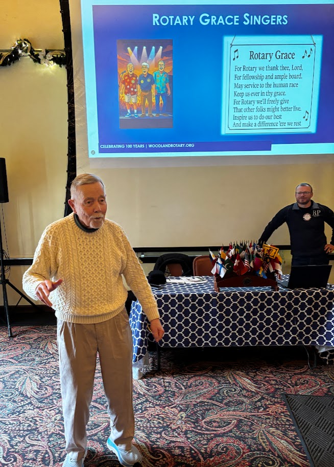 Jim McGibbon was by himself in leading the Club in today's Rotary Grace. The Woodland Sunrise Rotary team of Don Sharp & Byron MacConnell visited again today.